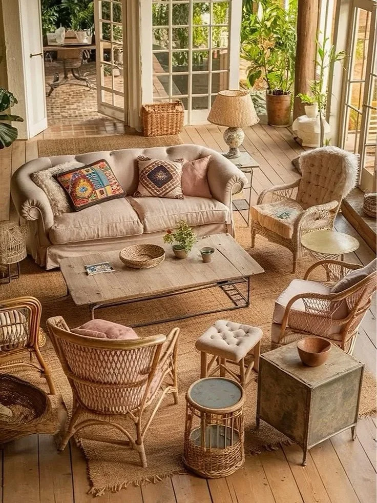Bois clair, rotin, lin, coton ou céramique artisanale permettent de créer une atmosphère authentique et apaisante.